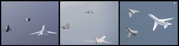Une campagne vidéo réalisée par PEMA2M a démarré depuis ce matin sur les sites LesEchos.fr et Lefigaro.fr. Elle a pour but de sublimer le vol historique en patrouille d’un drone, d’un chasseur et d’un avion d’affaires.